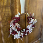 Elles sont créées avec des fleurs séchées et stabilisées sur un support en métal or, blanc ou bambou. Plusieurs taille existent, je m'adapte à vos demandes.